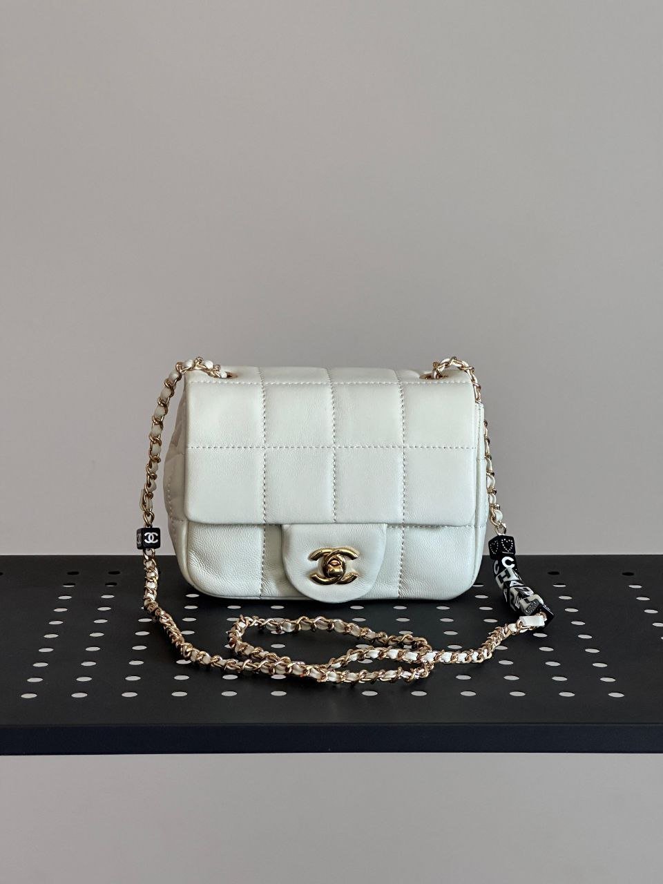 Design Chocolate Bar Mini Matelasse Lamb Skin Shoulder Bag White – Dubai Fashion LUX