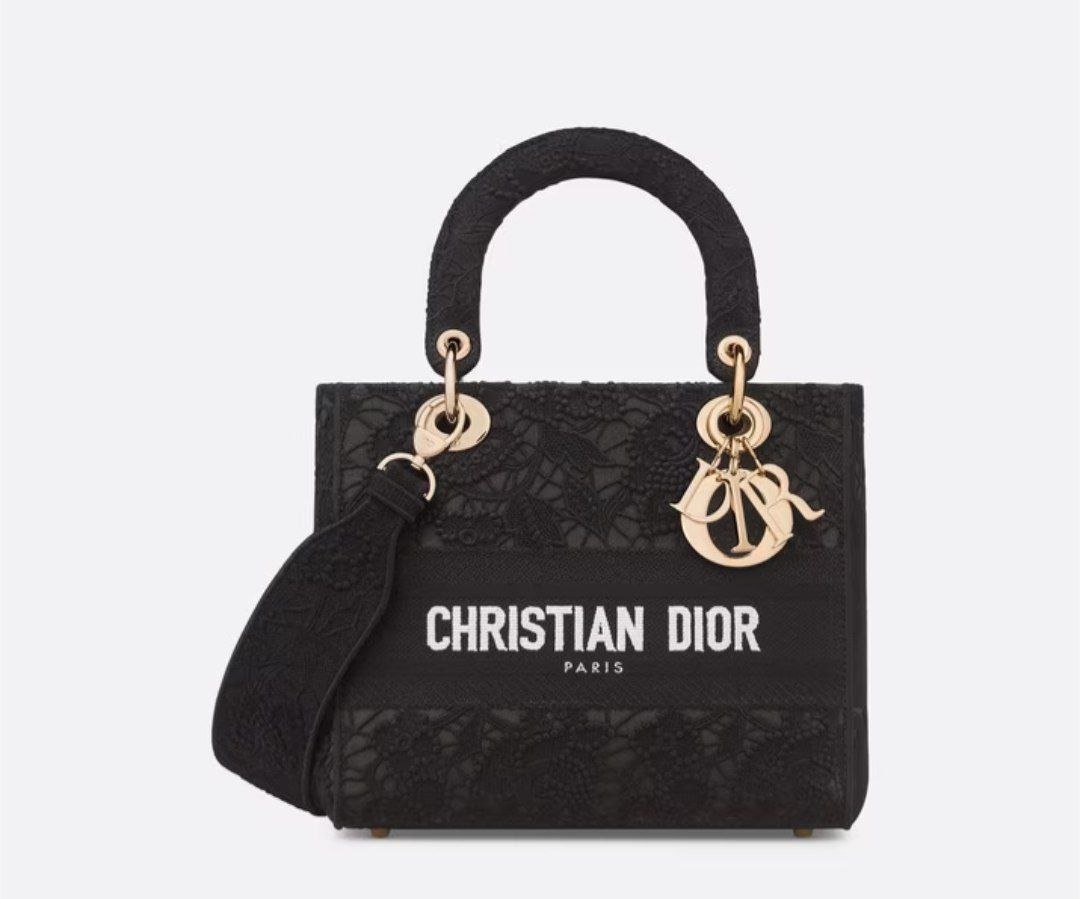 Design MEDIUM LADY D-LITE BAG Black D-Lace Embroidery with Macramé Effect – Dubai Fashion LUX