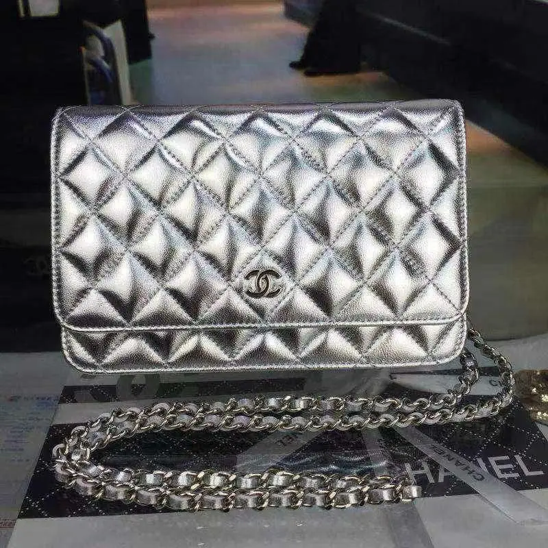 Design Metallic Lambskin Quilted Wallet On Chain WOC Silver – Dubai Fashion LUX