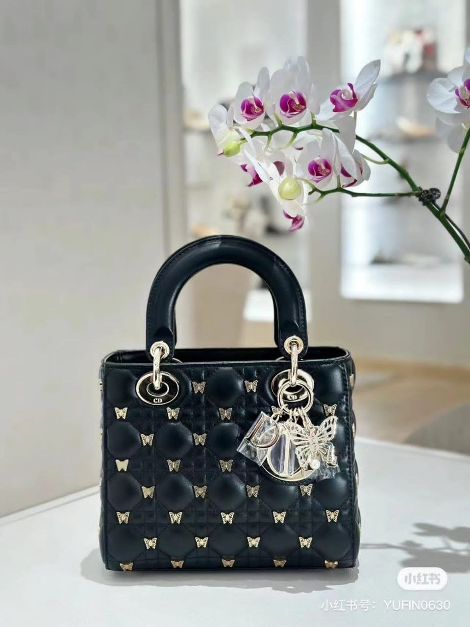 Design SMALL LADY BAG Cannage lamb leather in black with butterfly rivets – Dubai Fashion LUX